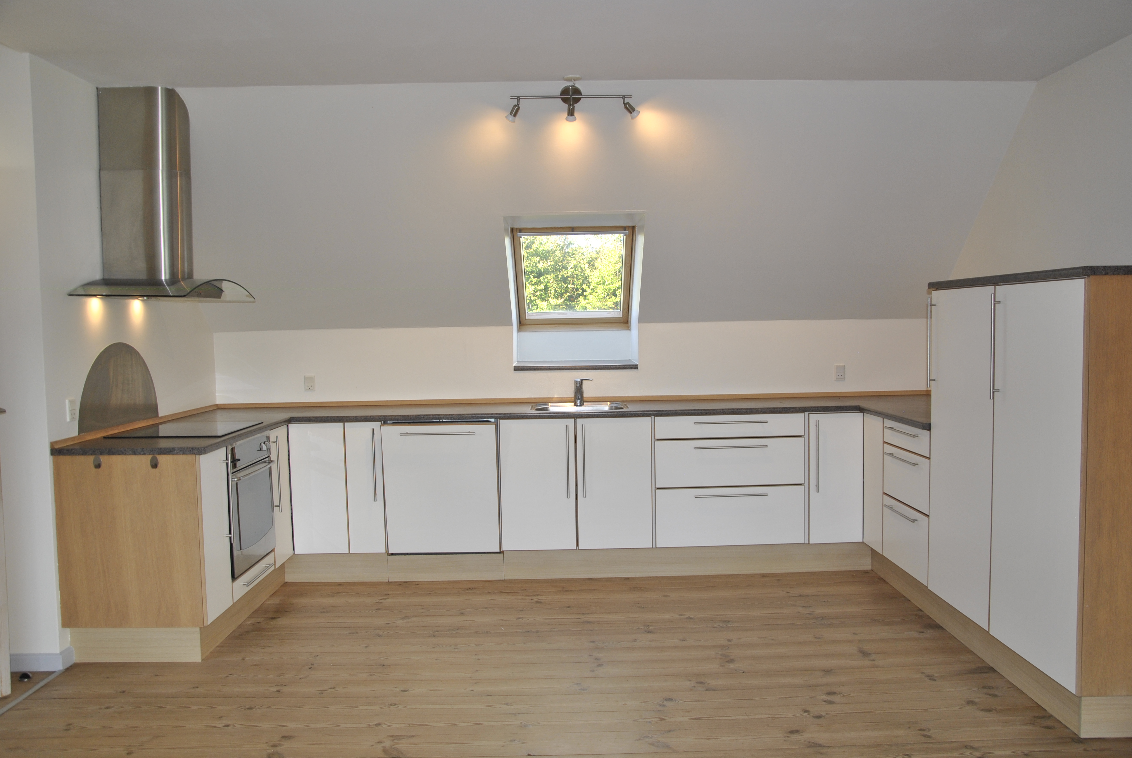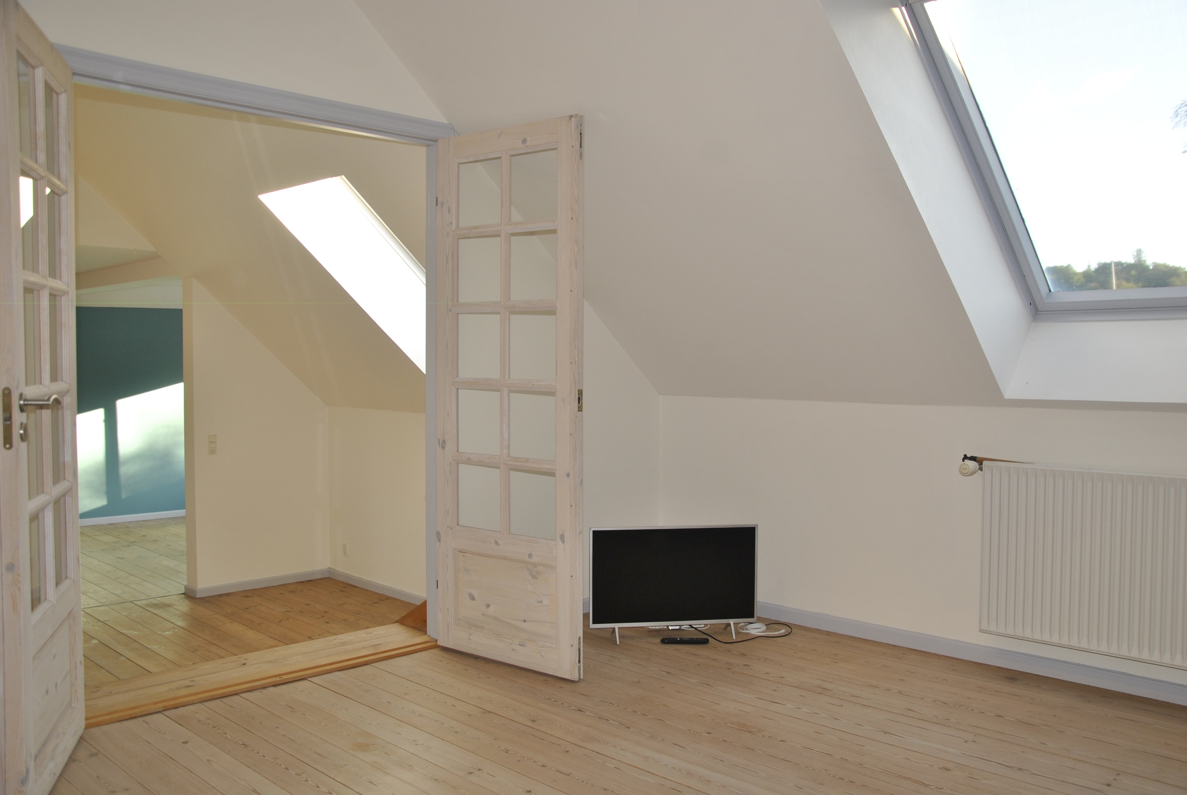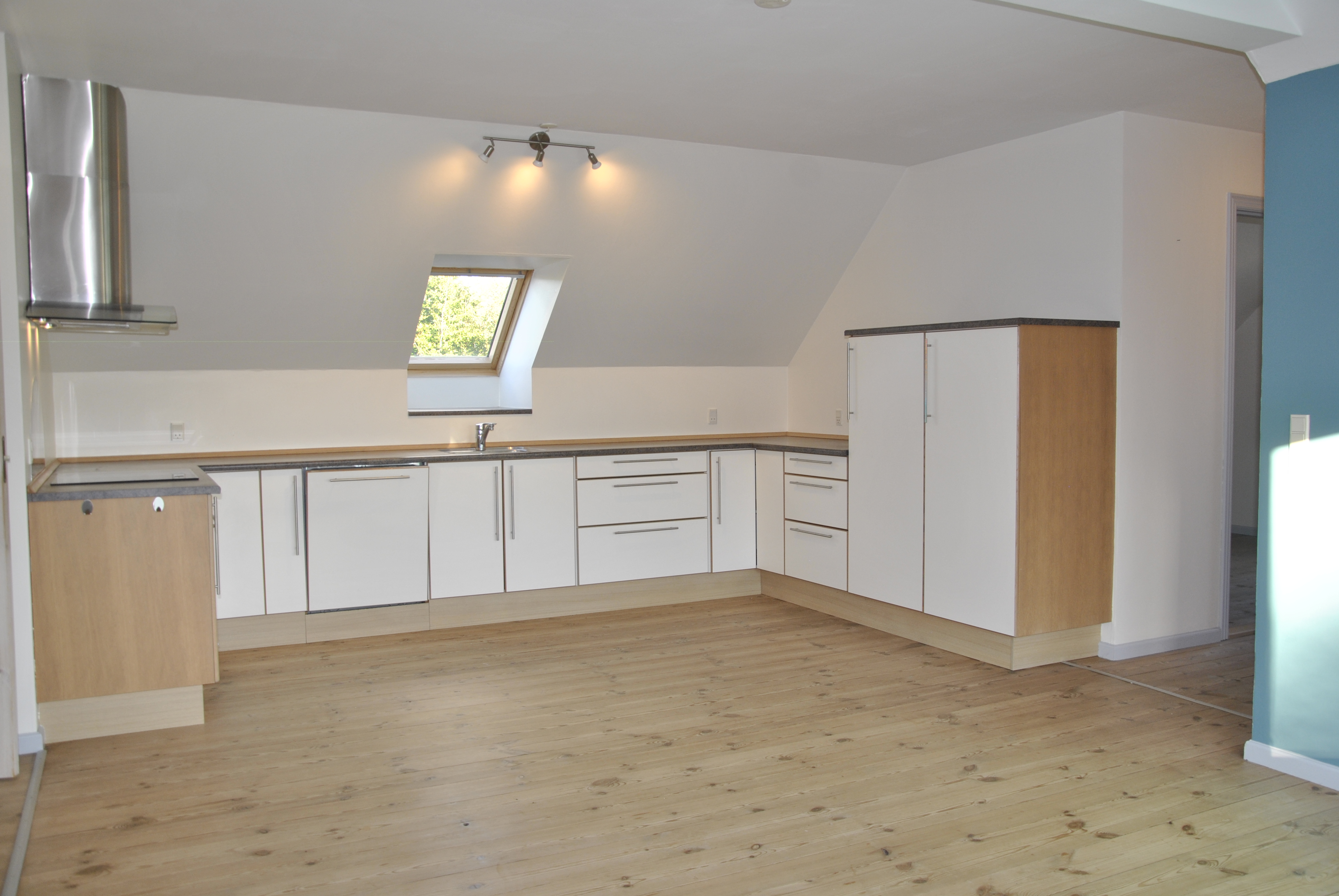 Entre, depotrum, soveværelse med faste skabe, stort køkken allrum med spiseplads, køleskab, ovn, kogeplader, emhætte og opvaskemaskine mellem gang med 3 trappe trin til stue / stort værelse med franske døre. Badeværelse med bruser, vaskemaskine og tørretumbler. Lejligheden er beliggende på 1 sal i Fiskbæk Gl. Mejeri, hvor der er 2 min kørsel til Løgstrup, 10 - 15 min til Viborg samt 20 min til Skive.