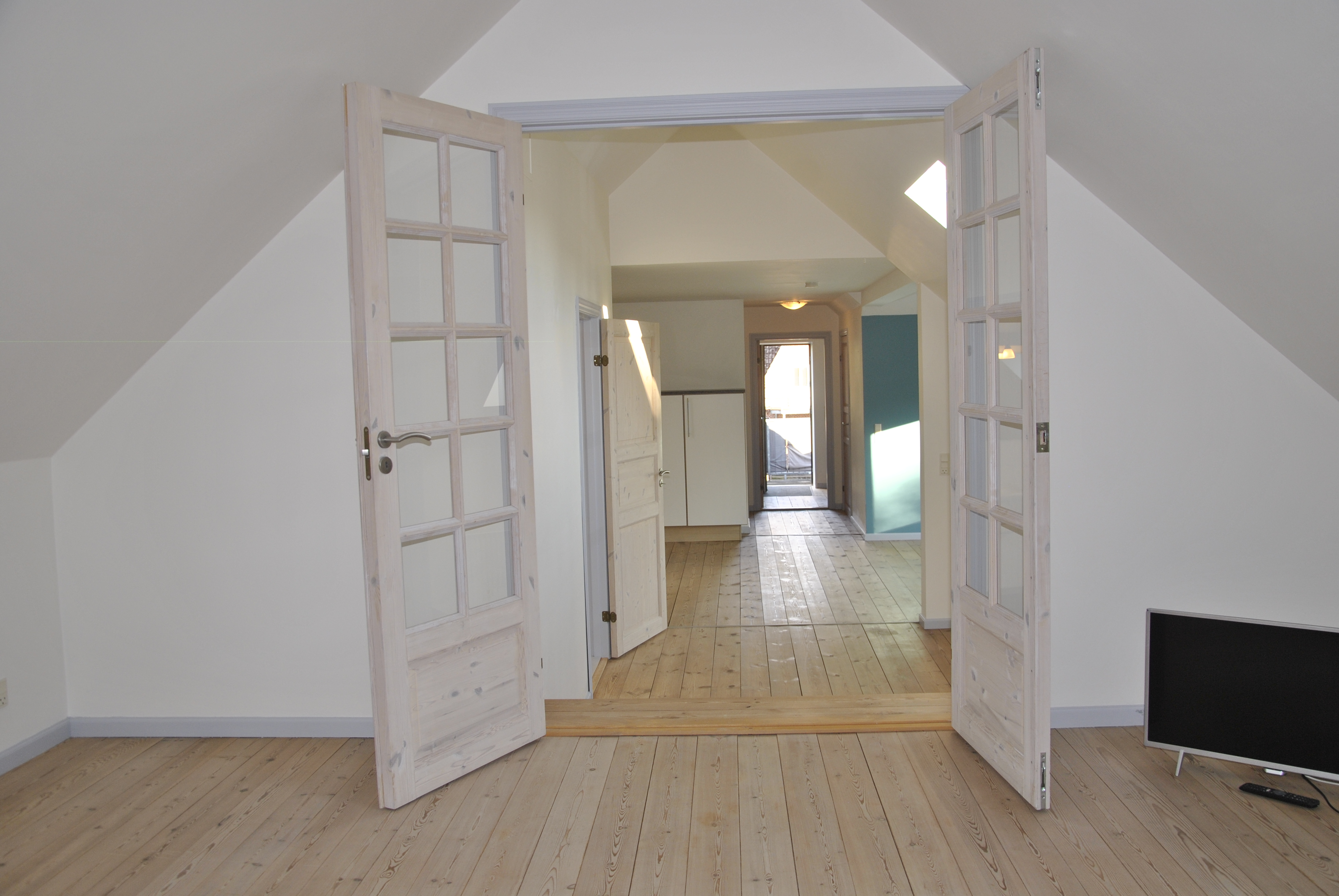 Flot og lys 3 værelses lejlighed med afhøvlede gulve. Indeholder: